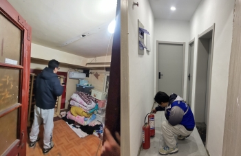 現(xiàn)場,工作人員、派出所民警及消防人員等,重點就“三合一”場所的安全出口數(shù)量、疏散門的開啟方向是否符合要求,疏散通道、安全出口是否被堵塞,滅火器的配置、電器線路鋪設(shè)是否符合要求、有無線路老化現(xiàn)象,場所內(nèi)有無違規(guī)住人等情況進(jìn)行檢查。