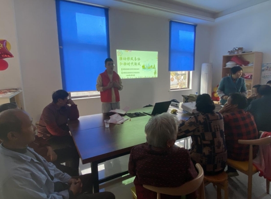 宣講會上,社區(qū)志愿者通過PPT的形式,用通俗易懂的語言圍繞移風易俗、弘揚時代新風進行講解。讓居民充分了解移風易俗的內涵與意義,樹立正確婚戀觀念,堅決抵制高價彩禮,不攀比斗闊,不大操大辦,不鋪張浪費,提倡適度辦婚事、節(jié)儉過日子。引導廣大居民轉變思想觀念,做勤儉節(jié)約的倡導者、做社會新風的建設者、做凈化風俗的推動者。