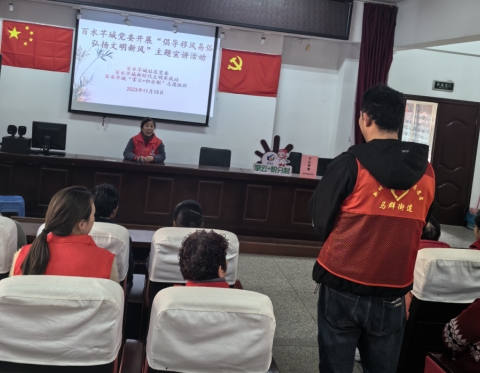 為深化移風(fēng)易俗,破除陳規(guī)陋習(xí),倡導(dǎo)文明新風(fēng),推動立德樹人。11月15日,百水芊城“掌云+積分制”志愿者領(lǐng)頭人華彥阿姨依托新時代文明實踐站開展“倡導(dǎo)移風(fēng)易俗 弘揚文明新風(fēng)”主題宣講活動。