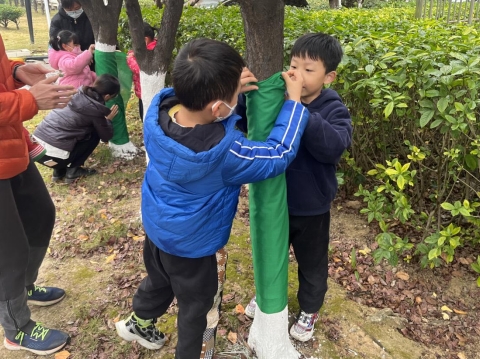 護一顆小樹,暖一個冬天。通過此次活動,孩子們了解到樹木御寒保暖的方法,用自己的方式關愛身邊的樹木。鍛煉了動手實踐能力,激發(fā)了孩子們的主人翁意識。