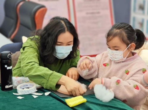 “哪位小朋友知道,大雪是二十四節(jié)氣中的第幾個節(jié)氣?”“雪花是怎么樣形成的呢?”……在互動環(huán)節(jié),商業(yè)幼兒園老師通過知識競賽的方式,帶大家深入了解大雪節(jié)氣知識。隨后,在老師的帶領下,開始進入手工制作環(huán)節(jié)。揉、捏、搓、貼......家長和孩子相互配合,制作著專屬親子間的大雪粘土畫,營造出了溫馨、歡樂的美好氛圍。