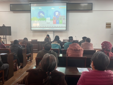 活動(dòng)現(xiàn)場村民、小區(qū)居民、保潔人員、志愿者參會,志愿者通過PPT播放的方式為居民講解垃圾分類知識,讓居民了解到怎么分、如何分,志愿者面對面講解,并分發(fā)垃圾分類宣傳資料,以引導(dǎo)居民正確處理生活垃圾。、