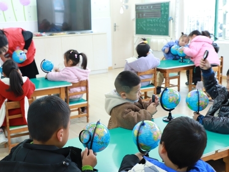 在活動中,孩子們除了學(xué)習(xí)中國地圖的外形特征,也了解到地圖背后的象征意義。他們認(rèn)識到中國地圖和國旗、國徽、國歌一樣,是國家的象征。通過與地球儀互動等方式,孩子們愉快地了解到了祖國的各個地域特色和特產(chǎn)。