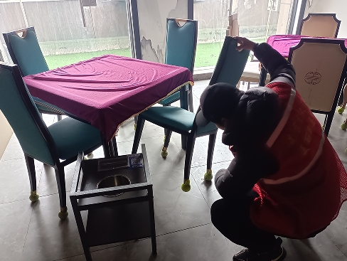 隨后社區(qū)環(huán)保工作者到棋牌室了解情況,棋牌室負責人表示確實有多次因為噪音情況被該訴求人投訴致使110出警干預,但同時也說明了棋牌室內情況,據該商戶負責人口述,室內噪音并不大,且夜間只有二樓包間有很少的客人,包間內有隔音設施,且在被投訴人投訴后,負責人為所有桌椅腳都裝上了網球墊用以降低噪音。社區(qū)人員查看了桌椅腳全部都墊有隔音網球墊,情況如商戶負責人所訴。