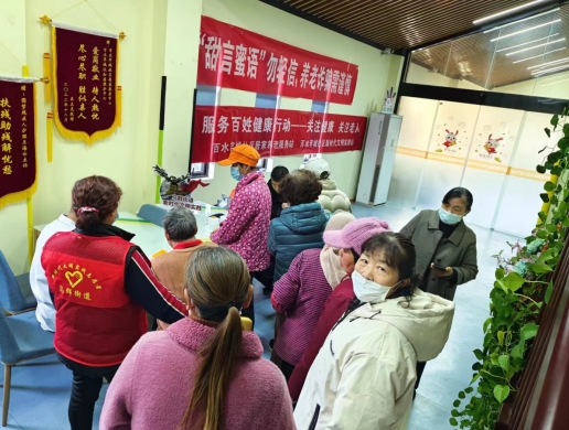 為進(jìn)一步提高轄區(qū)居民健康意識(shí),普及健康知識(shí),傳播健康理念, 12月8日,南京市棲霞區(qū)馬群街道百水芊城居家養(yǎng)老服務(wù)中心依托百水芊城新時(shí)代文明實(shí)踐站為社區(qū)居民開展“服務(wù)百姓健康行動(dòng)-關(guān)注健康、關(guān)注老人”免費(fèi)義診活動(dòng),讓社區(qū)居民不出社區(qū)就能享受到健康醫(yī)療服務(wù)。