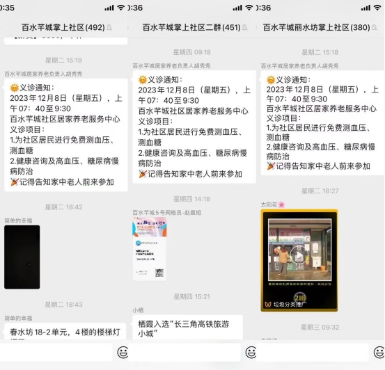 前期,百水芊城居家養(yǎng)老服務(wù)中心通過“掌上云”微信群、線下入戶走訪、電話通知等方式宣傳義診內(nèi)容,以及參與此次義診專家介紹,引導(dǎo)轄區(qū)居民關(guān)注自身健康。