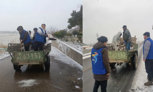 晶明村:撒鹽除雪保暢通 志愿服務(wù)暖人