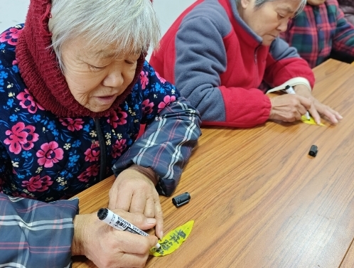 除了知識的傳授,活動還設置了一個別具創(chuàng)意的環(huán)節(jié):在樹葉上寫祝福。居民們紛紛拿起筆,在樹葉上寫下對環(huán)保的祝福和承諾。這種形式的參與讓居民們更加親身地感受到了環(huán)保的意義,激發(fā)了他們對環(huán)保的熱情和行動的決心。