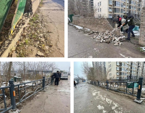 12月20日,正值雨雪天氣,石壩社區(qū)網(wǎng)格員在“181平臺巡查時發(fā)現(xiàn)府軍衛(wèi)近變電站處道路上有一處圍墻有倒塌跡象,加上雪的覆蓋,顯得此處圍墻更是搖搖欲墜,并且緊貼圍墻南側有一處供居民行走的臺階,大大加深了出現(xiàn)安全事故的隱患。為了預防事故的發(fā)生,保證居民的安全出行,石壩社區(qū)在街道幫助下組織人工立即對圍墻進行拆除并在周圍立起警示牌提醒路人注意安全,經(jīng)過2個小時的努力,原本圍墻已全部拆除。拆除完畢后,石壩社區(qū)組織工人將拆除的空缺部位及時嵌入護欄,預防安全事故的發(fā)生。