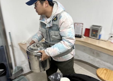 梨湯熬好后, 裝入保溫桶,送達目的地。