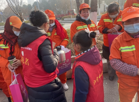 江寧街道“一杯姜茶·溫暖南京”中小學(xué)生志愿者關(guān)愛環(huán)衛(wèi)工人新年送溫暖活動