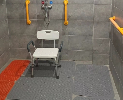 其次,為了防止地面濕滑,服務(wù)站還安裝了防滑設(shè)施。這些防滑措施包括采用防滑材料、設(shè)置防滑墊、增加防滑紋路等方法,有效增加了長(zhǎng)者在助浴室中行走和站立時(shí)的穩(wěn)定性,預(yù)防了不必要的意外發(fā)生。