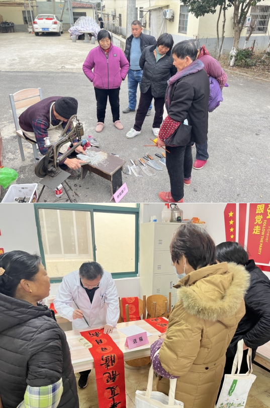整合服務資源,服務供給多樣化。本次活動不僅邀請了南京工程學院門診部師生資源,為社區(qū)村民提供測血糖、測血壓、健康問診、寫福送春聯服務,同時還有本村的志愿者服務資源——修鞋、理發(fā)、磨刀,讓村民不出社區(qū),也能辦很多事,享受更多的服務。
