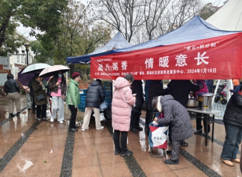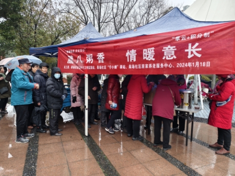 2024年1月18日,傳統(tǒng)臘八節(jié),果場社區(qū)黨委、關(guān)工委、“寧小蜂驛站”、居家養(yǎng)老服務(wù)中心依托社區(qū)新時代文明實踐站,借助“齊益果”·掌云+積分制工作機制,組織社區(qū)離退休黨支部的黨員志愿者、“齊益果”積分制志愿者等志愿力量,在社區(qū)天悅花園小區(qū)廣場給社區(qū)居民們進行了“臘八粥香 情暖意長”溫暖秋冬主題的分發(fā)臘八粥的志愿活動。