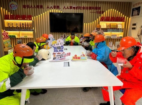 在社區(qū)愛(ài)心驛站里,也為新業(yè)態(tài)勞動(dòng)者們準(zhǔn)備了臘八粥,他們一邊喝著粥一邊聊著天,臉上洋溢著笑容。快遞員趙姐說(shuō)道:“感謝社區(qū)惦記著我們,在外忙活一上午,喝到這口熱乎的臘八粥,真是太溫暖了。”
