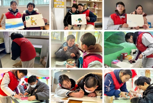 清晨,青年志愿者來到機構(gòu),為學員們帶來米、油、零食以及春節(jié)慰問物資,謙和地做自我介紹,與機構(gòu)學員近距離地接觸互動,并一同做剪紙、投壺游戲、指導(dǎo)畫畫等,體驗殘疾學員的日常生活,知曉殘疾人這一社會弱勢群體生活的不易與艱辛。午飯時間,他們主動提出給重度自閉癥學員喂飯,進一步展現(xiàn)青年志愿者的友愛與奉獻精神。