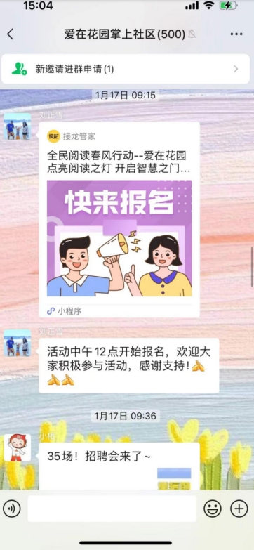 為深化全民閱讀活動(dòng),豐富青少年的課余生活,弘揚(yáng)中華優(yōu)秀傳統(tǒng)文化。南京市棲霞區(qū)龍?zhí)督值阑▓@村委會(huì)利用“掌上云社區(qū)”小程序發(fā)布全民閱讀活動(dòng)招募,線下社區(qū)“掌上云社區(qū)”志愿者開展“點(diǎn)亮閱讀之燈 開啟智慧之門”主題活動(dòng)。