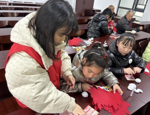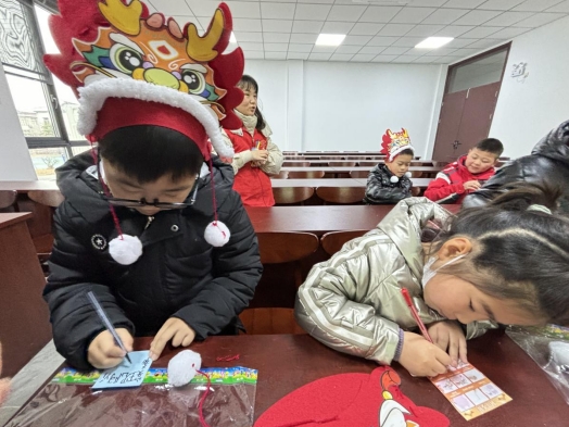 除了閱讀和討論,活動(dòng)還為孩子們準(zhǔn)備了手工制作環(huán)節(jié)。志愿者們發(fā)放了“頭龍帽”制作材料包,引導(dǎo)孩子們親自動(dòng)手制作頭龍帽。在志愿者的耐心指導(dǎo)下,孩子們發(fā)揮想象力,認(rèn)真制作著屬于自己的頭龍帽。不一會(huì)兒,一個(gè)個(gè)精美的頭龍帽就完成了。孩子們戴上自己制作的頭龍帽,臉上洋溢著自豪和喜悅。此外,活動(dòng)還特別設(shè)置了寫(xiě)下新年期待的環(huán)節(jié)。志愿者們邀請(qǐng)孩子們用紙筆寫(xiě)下自己的新年愿望和期待?;顒?dòng)最后,柏墅村為孩子們準(zhǔn)備了龍年主題公仔盲盒抽取,讓孩子們感受著迎接新年的喜悅和美好。