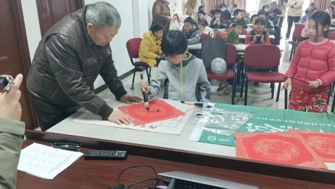 春聯(lián),又叫“春貼”、“門對”、“對聯(lián)”,是我們中國過春節(jié)的重要標志”,志愿者通過給孩子們播放視頻、講解傳統(tǒng)故事等方式介紹了解春節(jié)的由來和習俗,做好傳統(tǒng)節(jié)日文化教育普及,讓參加活動的孩子們對“貼春聯(lián)”、“守歲”、“拜年”等過年習俗有了更深刻的認識。