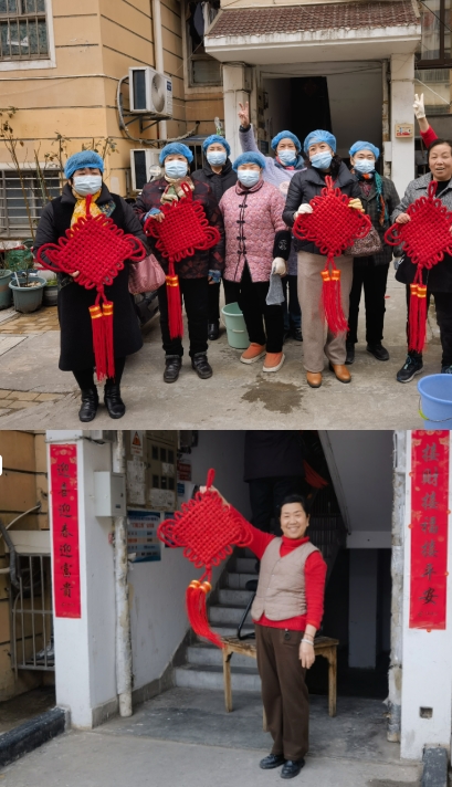 清掃完畢之后,志愿者們?cè)趩卧T口張貼了對(duì)聯(lián),掛上中國(guó)福,一起拍照留念,充滿了濃郁的節(jié)日氛圍。