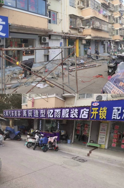近期,在日常的網(wǎng)格巡查中,潤(rùn)康苑社區(qū)工作人員發(fā)現(xiàn)融康苑27棟的門面房存在嚴(yán)重的安全隱患。門頭脫落、下沉、斷裂等問(wèn)題不僅影響了市容市貌,更對(duì)周邊居民的出行安全構(gòu)成了嚴(yán)重威脅。