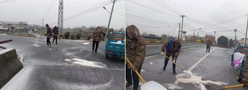結(jié)合村內(nèi)道路實(shí)際狀況,西埠村精心組織,合理安排人員,持續(xù)在馬巷村橋,曹村橋,下橋村橋等路段進(jìn)行撒鹽除冰工作,引導(dǎo)過往車輛安全有序通行、安全行車,將降雪天氣對道路交通的影響降到最低,過往居民紛紛點(diǎn)贊。同時(shí),通過居民聯(lián)系微信群向轄區(qū)居民宣傳“凝凍天氣,注意出行安全;居家保暖,注意用火用電安全”的安全知識(shí),增強(qiáng)群眾安全意識(shí)。