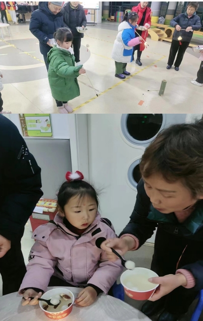 最令人期待的環(huán)節(jié)莫過于元宵制作區(qū)了。3組家庭為一組,通過游戲闖關的方式獲取元宵食材。成功闖關后,孩子們興奮地拿著碗、糯米和酒釀,到指定區(qū)域搓元宵、下元宵。當一碗碗熱騰騰的元宵端上桌時,孩子們的臉上寫滿了自豪和滿足。