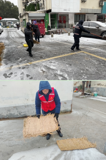 在22日下午到晚間,社區(qū)工作人員、新業(yè)態(tài)群體黨員和共建單位黨員對街面商戶進行了通知,做好商戶門前的掃雪,對社區(qū)住宅區(qū),如馬群公寓、陳家院村等,鋪設防滑草甸,撒融雪劑,保障下班的居民回家安全。