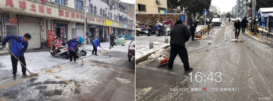 掃雪除冰,志愿先行。大家迅速投入到清雪一線,利用雪鏟、鐵鍬、融雪劑等對(duì)轄區(qū)內(nèi)主干道、急彎、陡坡、易積水結(jié)冰路段、事故多發(fā)路段進(jìn)行“鏟雪除冰行動(dòng)”,明確分工,手持鐵鍬、掃帚,你掃我鏟,相互配合,干得熱火朝天。經(jīng)過(guò)大家通力合作,為轄區(qū)群眾清掃出了一條“平安路”“溫暖路”,用“小行動(dòng)”保障“大民生”,踐行了全心全意為人民服務(wù)的宗旨,極大程度解決了嚴(yán)寒天氣群眾“出行難”的問(wèn)題,切實(shí)保障居民生活工作的正常進(jìn)行。