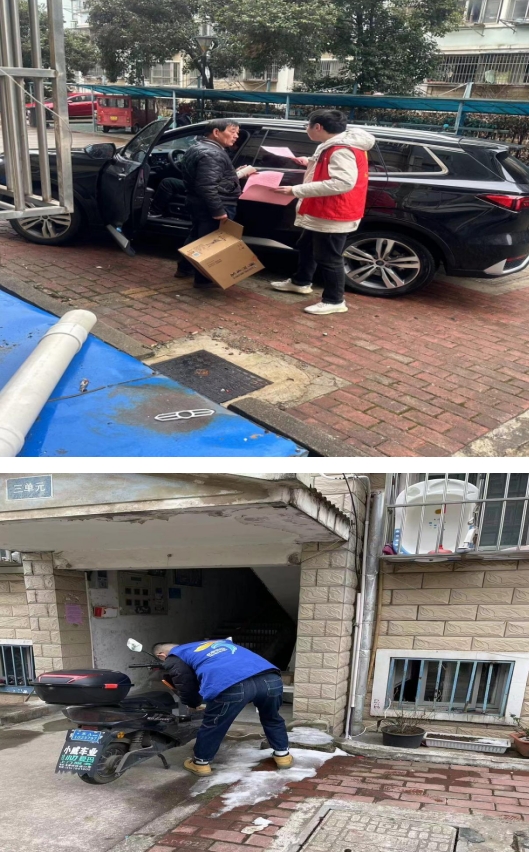 在排查過程中,黨員同志與網(wǎng)格員們深入小區(qū)樓棟,線上通過網(wǎng)格微信群、朋友圈開展“全覆蓋式”宣傳,向轄區(qū)居民發(fā)放安全管理一封信,推送電動車安全管理常識及典型案例短視頻,線下張貼消防安全隱患告知書,通過走街串巷、入戶走訪等形式,發(fā)放電動車安全管理知識宣傳單,同時利用社區(qū)LED屏、小喇叭、網(wǎng)格居民微信群推送電動車消防安全隱患相關(guān)的知識、小視頻及不要在樓道內(nèi)堆放雜物的安全提示等,對已經(jīng)停放在樓道的電動車,黨員志愿者合力將其搬放置在規(guī)范區(qū)域內(nèi),消除安全隱患,維護公共安全。通過多渠道的宣傳,有效為居民敲響消防安全警鐘,提高消防安全意識。
