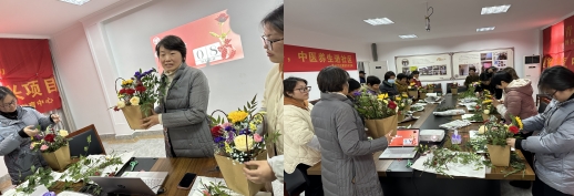 隨后,花藝老師帶領(lǐng)大家一起插花,并傳授了很多插花小技巧。大家躍躍欲試,在老師的指導(dǎo)下,紛紛動起手來,將一朵朵鮮花巧妙地搭配在一起,制作出美麗的花束。