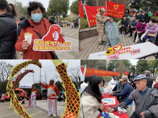 時(shí)光變遷,雷鋒精神永不過時(shí)?;顒蝇F(xiàn)場,在黨員志愿者的引導(dǎo)下,居民們有序排隊(duì),此外,針對居民需求,活動現(xiàn)場還設(shè)有免費(fèi)理發(fā)、口腔義診、健康咨詢、縫補(bǔ)、磨刀、理發(fā)、爆米花等各類免費(fèi)服務(wù)項(xiàng)目。志愿者們忙碌的身影也成了活動中一道亮麗的風(fēng)景線,他們踐行雷鋒精神,向居民宣傳雷鋒事跡,普及志愿服務(wù)理念,為居民生活帶來便利;在反詐、垃圾分類、移風(fēng)易俗等政策宣傳區(qū),黨員志愿者們向居民普及各類政策知識,發(fā)放宣傳材料;同時(shí),活動還安排了轄區(qū)老年人舞蹈隊(duì)的紅歌舞蹈表演、舞龍演出等多個(gè)節(jié)目,讓老人們贊不絕口,贏得現(xiàn)場陣陣掌聲。