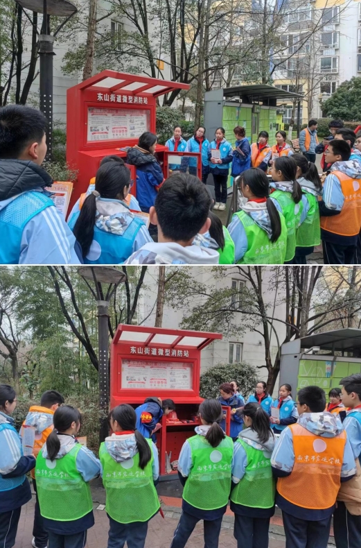 師生們還來到了社區(qū)微型消防站進(jìn)行實地學(xué)習(xí)。在消防員的指導(dǎo)下,他們參觀了消防器材的存放和使用場所,了解了消防站的日常管理和運行機(jī)制。消防員還為大家演示了消防器材的使用方法,讓師生們更加深入地了解了消防設(shè)備的實際操作。