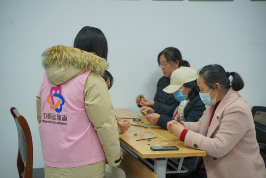 隨后,活動(dòng)現(xiàn)場進(jìn)入了實(shí)踐環(huán)節(jié)。在老師的指導(dǎo)下,參與者們親自動(dòng)手,體驗(yàn)了纏花發(fā)簪的制作過程。他們從選材、設(shè)計(jì)到纏繞、裝飾,每一步都充滿了挑戰(zhàn)和樂趣。社區(qū)工作人員和志愿者也隨時(shí)提供著幫助,經(jīng)過一個(gè)多小時(shí)的精心制作,一件件精美的纏花發(fā)簪逐漸呈現(xiàn)在眼前。參與者們在欣賞自己的作品的同時(shí),也感受到了傳統(tǒng)技藝的獨(dú)特魅力。