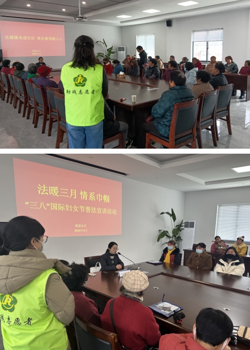 3月7日,“三八”國(guó)際婦女節(jié)即將到來(lái)之際,南京市江寧區(qū)橫溪街道橫溪社區(qū)為深入貫徹習(xí)近平新時(shí)代中國(guó)特色社會(huì)主義思想,堅(jiān)定不移走中國(guó)特色社會(huì)主義婦女發(fā)展道路,激勵(lì)廣大婦女自尊自信、自立自強(qiáng),聯(lián)合江蘇漫修律師事務(wù)所在社區(qū)中會(huì)議室開展“法暖三月,情系巾幗”的法律宣講活動(dòng)。