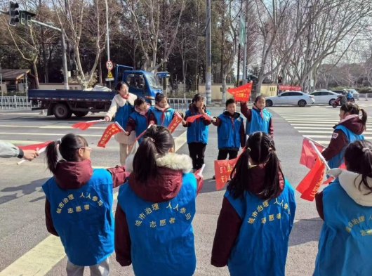 活動當(dāng)天,少先隊員一早便到達了集合地點,在社區(qū)工作人員和志愿者的引導(dǎo)下兵分兩路,一隊帶著毛巾、水桶、拖把等清潔用具走進社區(qū)居民樓,化身“清潔小達人”,圍繞小區(qū)開展環(huán)境衛(wèi)生大掃除;另一隊少先隊員則出現(xiàn)在社區(qū)交通路口,和交警叔叔一起,參與交通秩序維護,成為“文明交通代言人”。早春的清晨寒意猶在,可抵不住少先隊員們參與活動的熱情,無論被分配在哪個崗位,他們個個精神抖擻,積極勞動,充分發(fā)揚了不怕臟、不怕累、不怕辛苦的奉獻和志愿精神。
