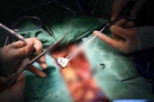 70多歲的王奶奶(化名)四年來一直有胸悶、心悸的毛病,近期突感癥狀加重,渾身不適,隨即前來該院心內(nèi)科就診。經(jīng)過心內(nèi)科的心臟彩超檢查,發(fā)現(xiàn)患者左心室及右心房增大,中重度主動脈瓣關(guān)閉不全,中重度三尖瓣關(guān)閉不全,輕中度肺動脈高壓,左室舒張及收縮功能異常。在心內(nèi)科和心胸外科錢軍嶺團隊的會診下,建議行心臟瓣膜置換手術(shù)。