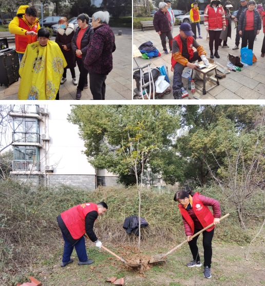 植樹現(xiàn)場,退休黨員們紛紛熱情高漲,一派熱火朝天的景象,揮鍬鏟土、培土圍堰、提水澆灌、扶樹正苗,合力栽下蜜桔、梔子花等十幾棵樹苗,為小區(qū)綠化再補(bǔ)新裝。此外還設(shè)有健康義診、義務(wù)理發(fā)、磨刀、反電詐宣傳等攤位,居民絡(luò)繹不絕。在健康義診區(qū),醫(yī)生們認(rèn)真問診,耐心解答,為居民提供了科學(xué)的健康指導(dǎo);磨刀、理發(fā)等便民服務(wù)攤位也是“生意火爆”,居民將自家用鈍的菜刀拿出來,不一會(huì)兒,刀具被磨得光亮如新;義剪師傅為居民系好圍布,按照老人的期望進(jìn)行“私人訂制”,經(jīng)過一番仔細(xì)修剪,頭發(fā)都變得十分干凈整齊。