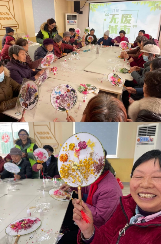在活動中,社區(qū)以《“無廢”讓生活更美好》為主題,結(jié)合實(shí)際生活,深入淺出地闡述了無廢城市的概念以及建設(shè)的必要性和重要性。讓居民認(rèn)識到,“無廢城市”并非不產(chǎn)生固體廢物,而是以創(chuàng)新、協(xié)調(diào)、綠色、開放、共享的新發(fā)展理念為引領(lǐng),倡導(dǎo)居民從生活中點(diǎn)點(diǎn)滴滴入手,積極踐行“光盤行動”“綠色出行”“綠色建筑”“再生資源回收利用”“減塑禁塑”等綠色環(huán)保低碳生活方式。同時(shí),工作人員通過圖文并茂的分享讓在場的居民對無廢城市理念有了更深入的了解。宣講之后社區(qū)工作人員還組織居民朋友們現(xiàn)場利用廢舊的枯木樹葉,廢報(bào)紙、木頭等材料制作了團(tuán)扇,讓廢物再利用讓,環(huán)保理念深入人心。