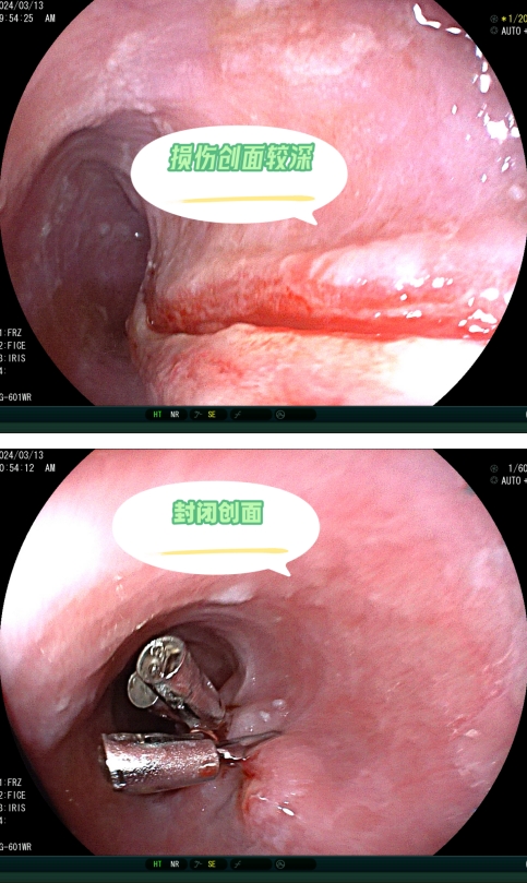 在麻醉科等各科醫(yī)務(wù)人員的配合下,魏主任以最快的速度,最短的時間,最有效的方案,為患者順利止血,數(shù)枚鈦夾封閉食管創(chuàng)面。患者癥狀立刻得到改善,在醫(yī)護人員的精心治療護理下,患者順利康復(fù)出院。