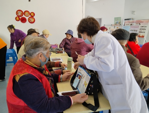 李醫(yī)生就膽固醇、高血壓等常見病特點、預(yù)防知識進(jìn)行了深入淺出的講解。她列舉案例,聲情并茂,提醒大家注意合理安排飲食、保持良好的心態(tài)、不盲目吃藥、濫用保健品,并建議根據(jù)自身情況合理安排一些戶外運動,舒展身心、汲取自然活力,增強(qiáng)機(jī)體抵抗能力。大家聽得專心致志,津津有味。隨后,李醫(yī)生團(tuán)隊在現(xiàn)場為老人開展血糖血壓測量,認(rèn)真詢問,耐心細(xì)致地為他們解釋檢查結(jié)果、身體狀況、飲食安全、合理用藥等問題,并了解大家既往使用藥物情況,叮囑需要進(jìn)一步服藥治療的患者定期去醫(yī)院檢查。