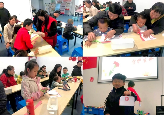 讀完繪本以后,社區(qū)志愿者又拓展手工活動DIY“急救包”,心靈手巧的孩子們,在家長的陪伴指導(dǎo)下,耐心地通過裁剪以及粘貼的方式制作出屬于自己的“急救包”。通過手工訓練孩子的耐心,感受水滴石穿、聚沙成塔的過程,明白堅持積累的力量。