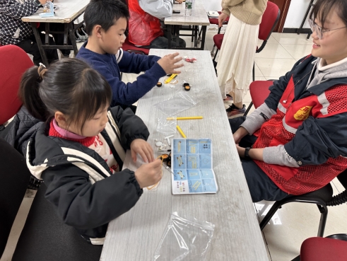 理論知識的學(xué)習(xí)結(jié)束后,龔然琪同學(xué)給未成年人們發(fā)放實驗材料,在志愿者們的幫助下,每位未成年人都成功地制作出一輛彈簧車,切身感受到彈性勢能與動能的轉(zhuǎn)換過程,體會到了能量守恒定律的神奇之處。