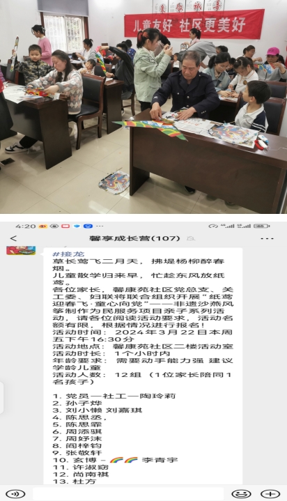 活動前,社區(qū)依托“掌上云”信息發(fā)布功能在“馨享成長營”群內(nèi)進行了活動預(yù)告和招募,消息一經(jīng)發(fā)出,家長們爭先恐后地接龍報名,群內(nèi)氛圍十分活躍。