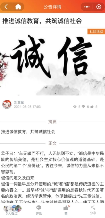 掌上云社區(qū):推進(jìn)誠信教育 共筑誠信社
