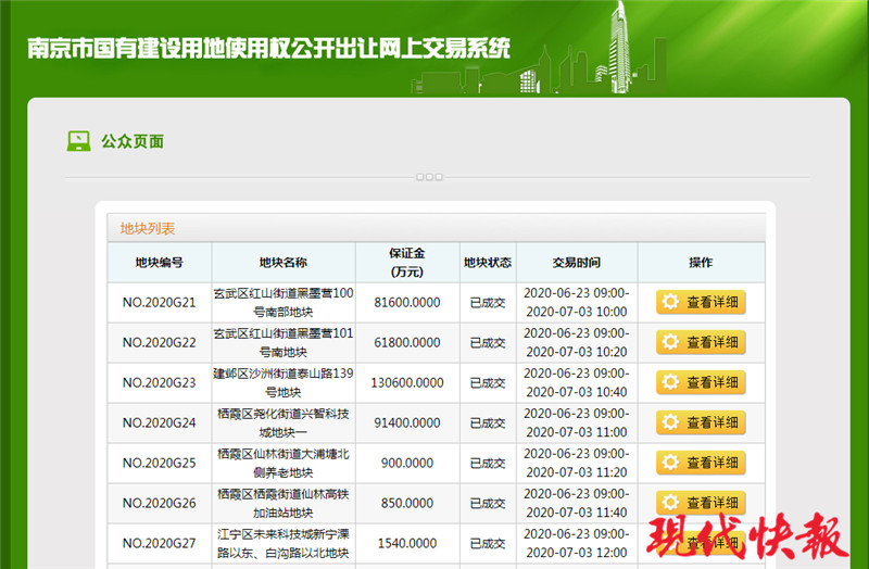 南京7幅地塊全部底價(jià)成交 河西中宅地樓面價(jià)2.9萬(wàn)/㎡