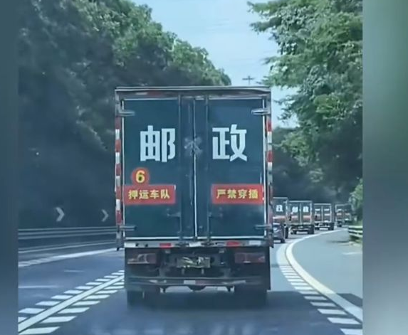 高考試卷都是統(tǒng)一由“中國(guó)郵政”的專車送往全國(guó)各地的,視頻中幾輛“綠油油”的中國(guó)郵政卡車在高速路上疾馳著。