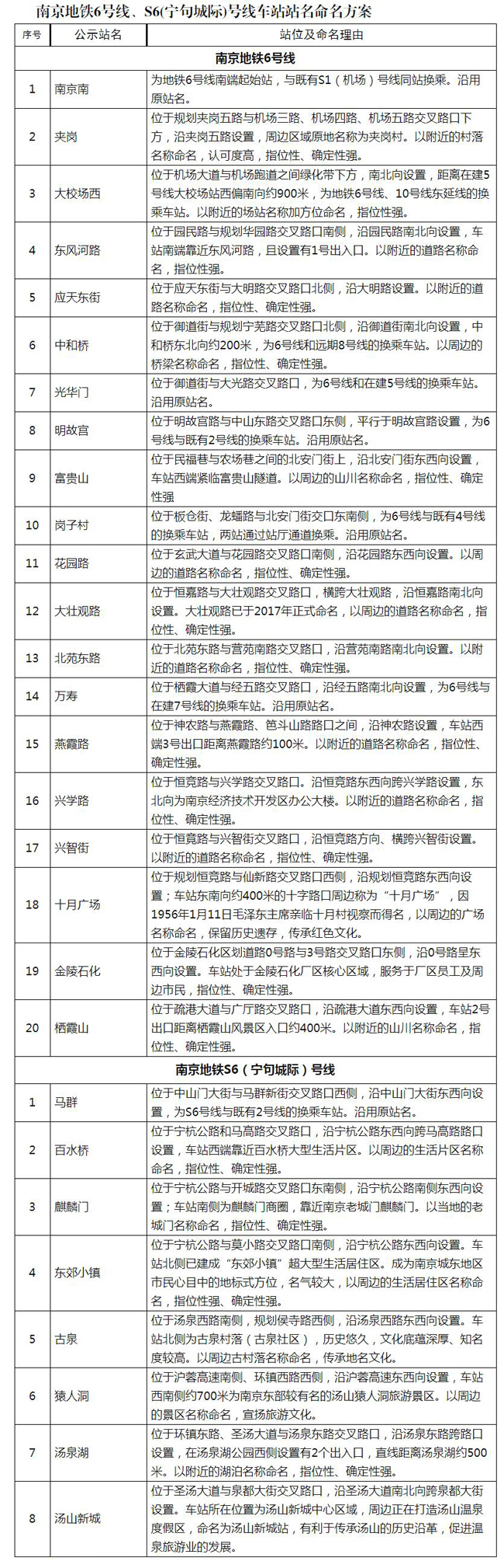 有建議快來提!南京公示地鐵6號線、S6號線車站名