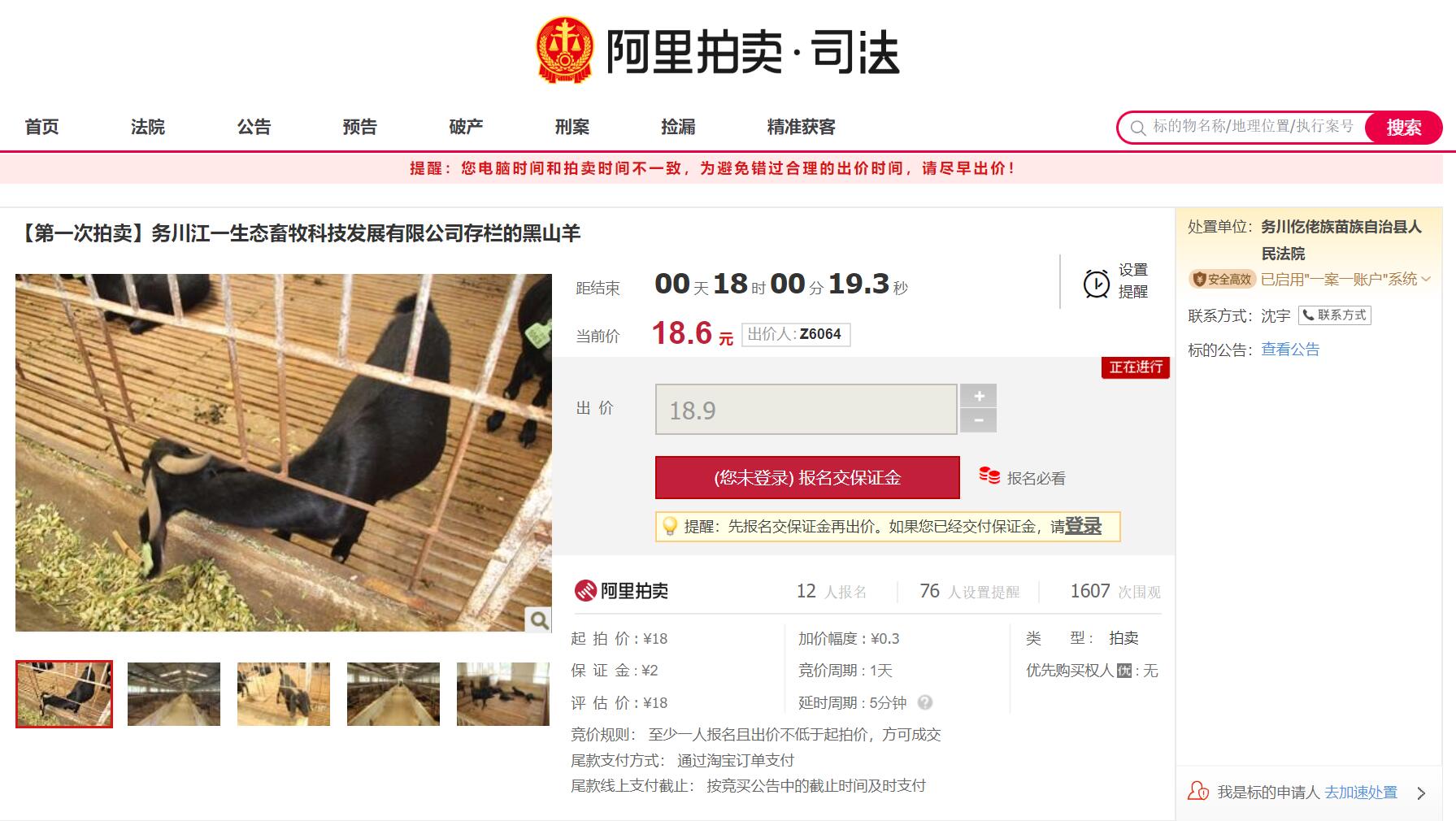 (記者 季雨)對(duì)于吃貨們來(lái)說(shuō),羊肉是美味,羊肉串、手抓羊肉、黃燜羊肉……對(duì)于愛(ài)美人士來(lái)說(shuō),羊毛、羊皮還是優(yōu)質(zhì)皮具、衣服的原材料。8月8日,務(wù)川仡佬族苗族自治縣人民法院在阿里拍賣(mài)平臺(tái)公開(kāi)拍賣(mài)6500只羊,拍賣(mài)很有意思,6500只羊不是論只賣(mài),而是論斤賣(mài)。