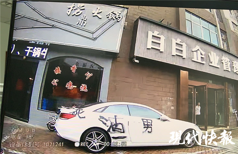 現(xiàn)代快報記者了解到,7月23日,男子小李將私家車停在一火鍋店門口,可當他回來取車時發(fā)現(xiàn),車上竟然被噴了黑油漆,寫著“渣男”“劈腿”等字樣。走近一看,車身上還被多處刮傷。小李趕忙報了警。蘭陵派出所民警接到報警后立即趕往現(xiàn)場,調(diào)取了街邊的公共視頻看到,劃車、涂鴉的是一個年輕女子。